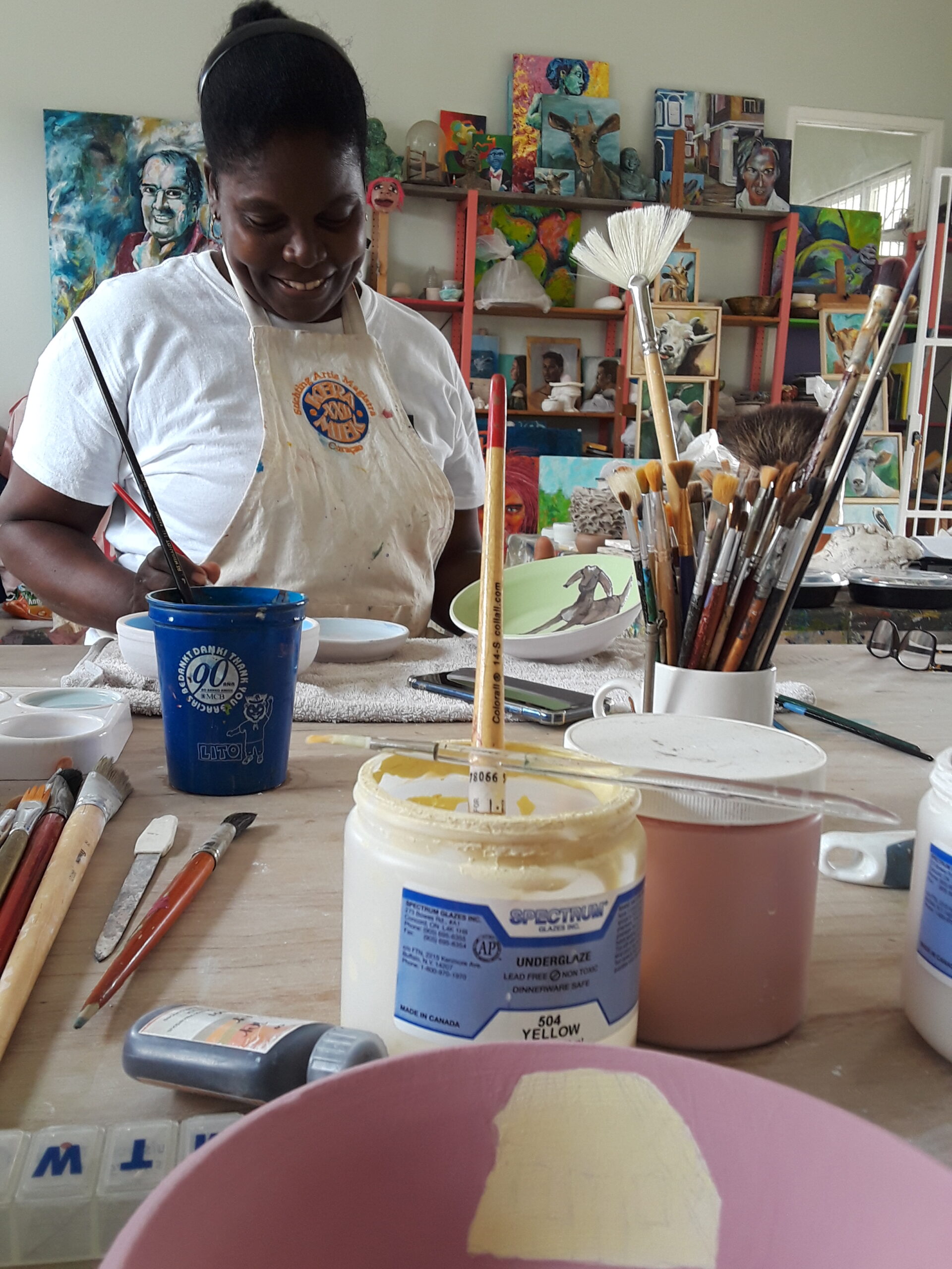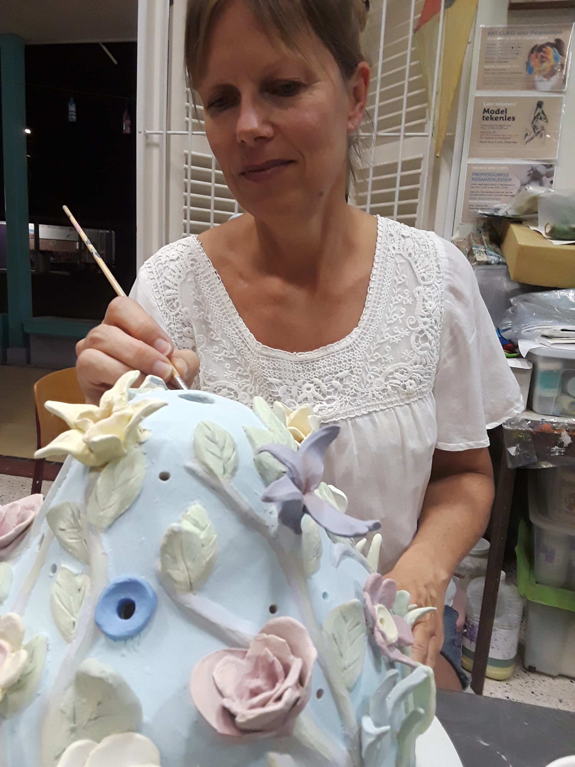 Annemieke enjoys sharing her skills and experience with others. Adults can sign up for lessons in ceramics and drawing live models. During weekly art classes children take the first steps in developing their creativity and as such, they always work with different materials. Stimulating and supporting artistic skills is the starting point and the formal objective of the Artis Magistra foundation. It’s about people’s creative spirit, but also about actually producing works of art and souvenirs. Originality and craftsmanship are always the goal, but the most important thing is that all participants feel at ease. Getting away from their everyday concerns. It may just be that someone feels better after a few lessons and then the product is much more than just a souvenir or a work of art. You can see this in the happy, relaxed faces and the concentrated stares.